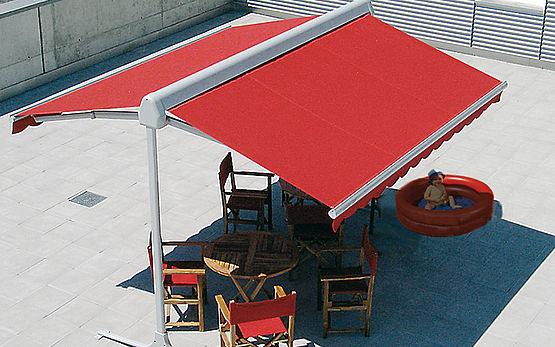 Ses possibilités d'application sont nombreuses, de la restauration aux marchés, en passant par les terrasses privées. Aucun support intermédiaire n'étant nécessaire, la surface sous ce store permet une utilisation optimale de l'espace. Son montage et démontage est aisé et rapide. Par ailleurs, sa stabilité est assurée par sa fixation au sol.